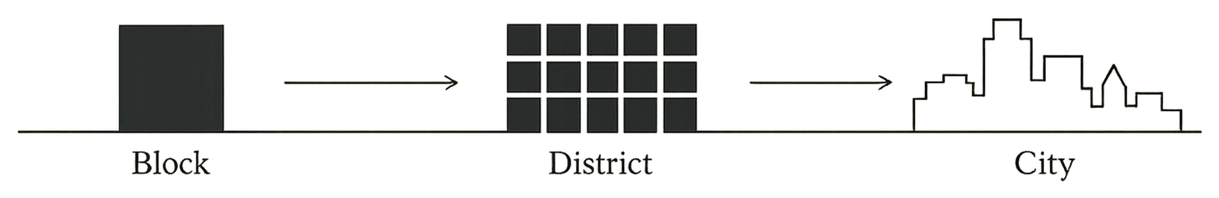 When blocks are complete and districts are coherent, cities grow from within — strengthening neighborhoods instead of hollowing out and spreading outward.